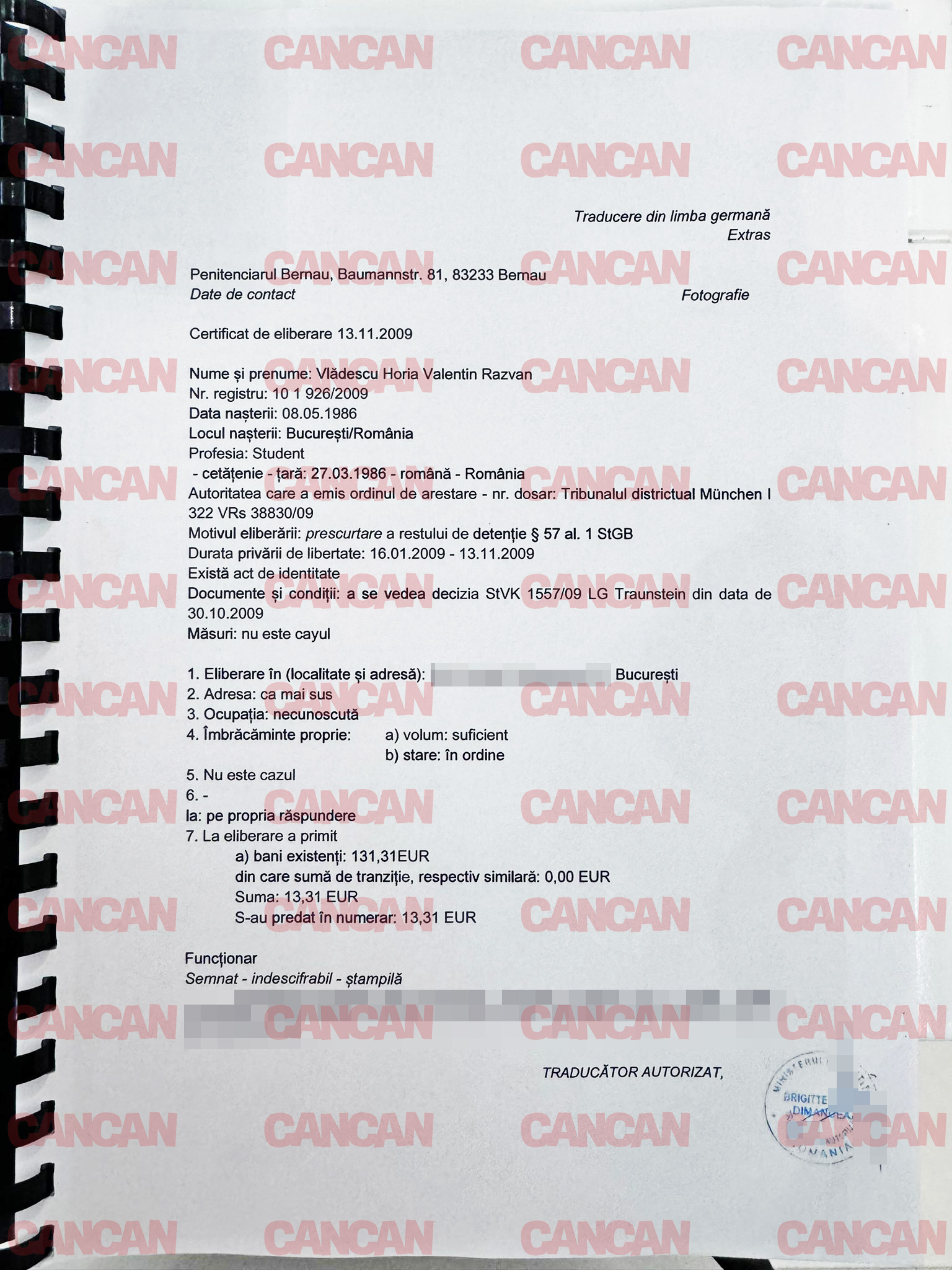 Traducerea actului de eliberare din arest