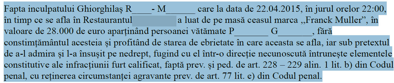 Un afacerist aflat în stare de ebrietate a fost jefuit de un ceas în valoare de 28.000 de euro