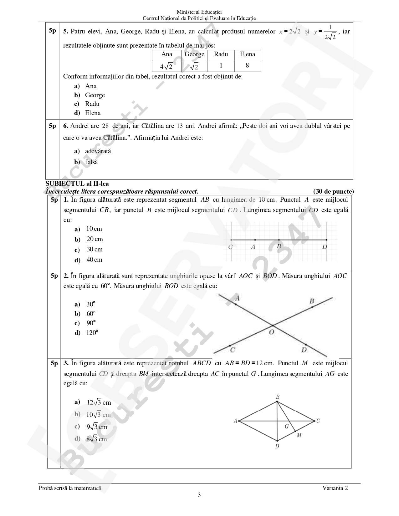 Subiecte matematică Evaluarea Națională
