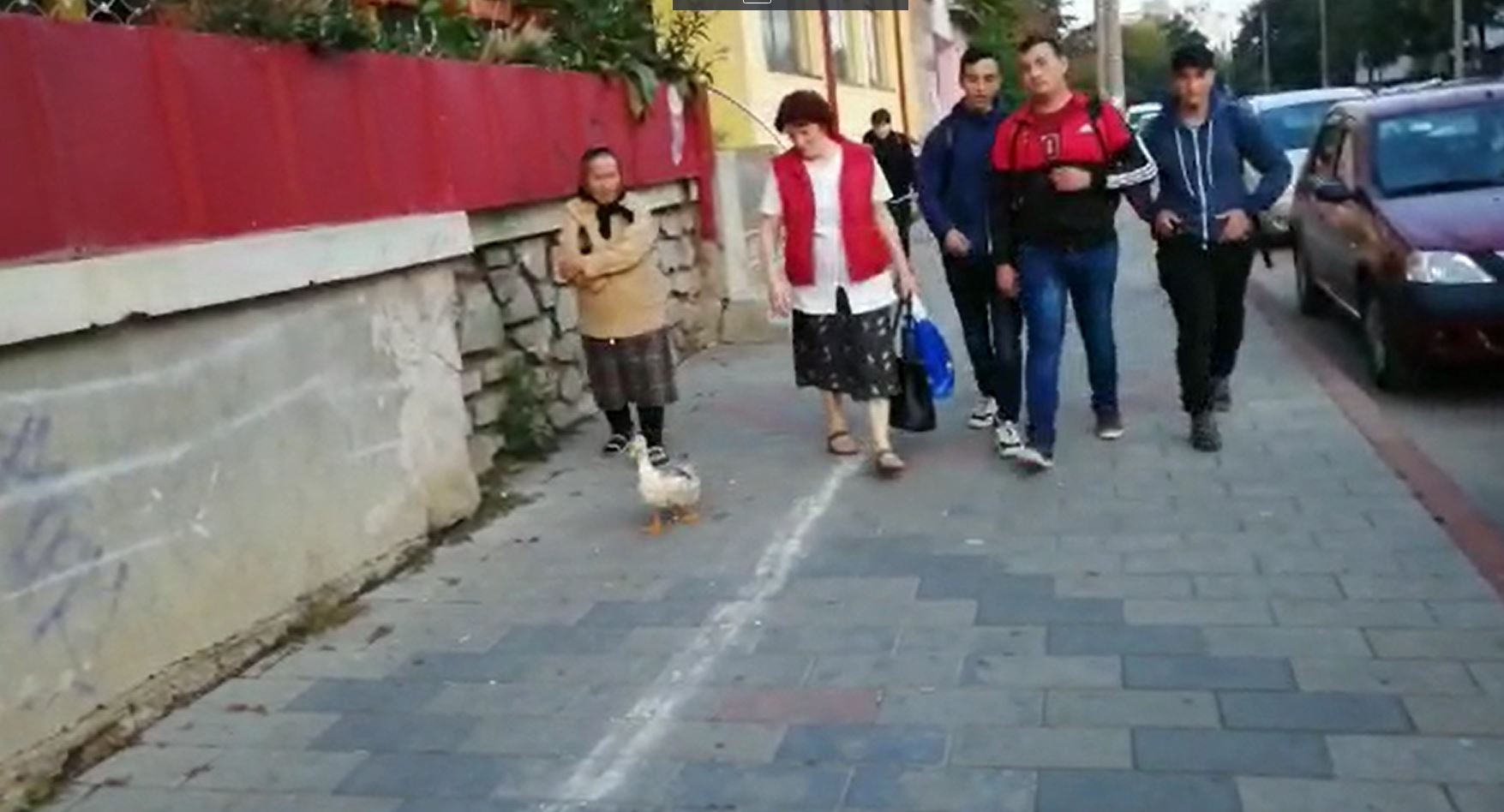 Fabulos! O bătrână din Botoșani a ieșit cu o rață la plimbare prin oraș. Cum a reușit să scape fără să fie amendată de polițiștii care au verificat-o