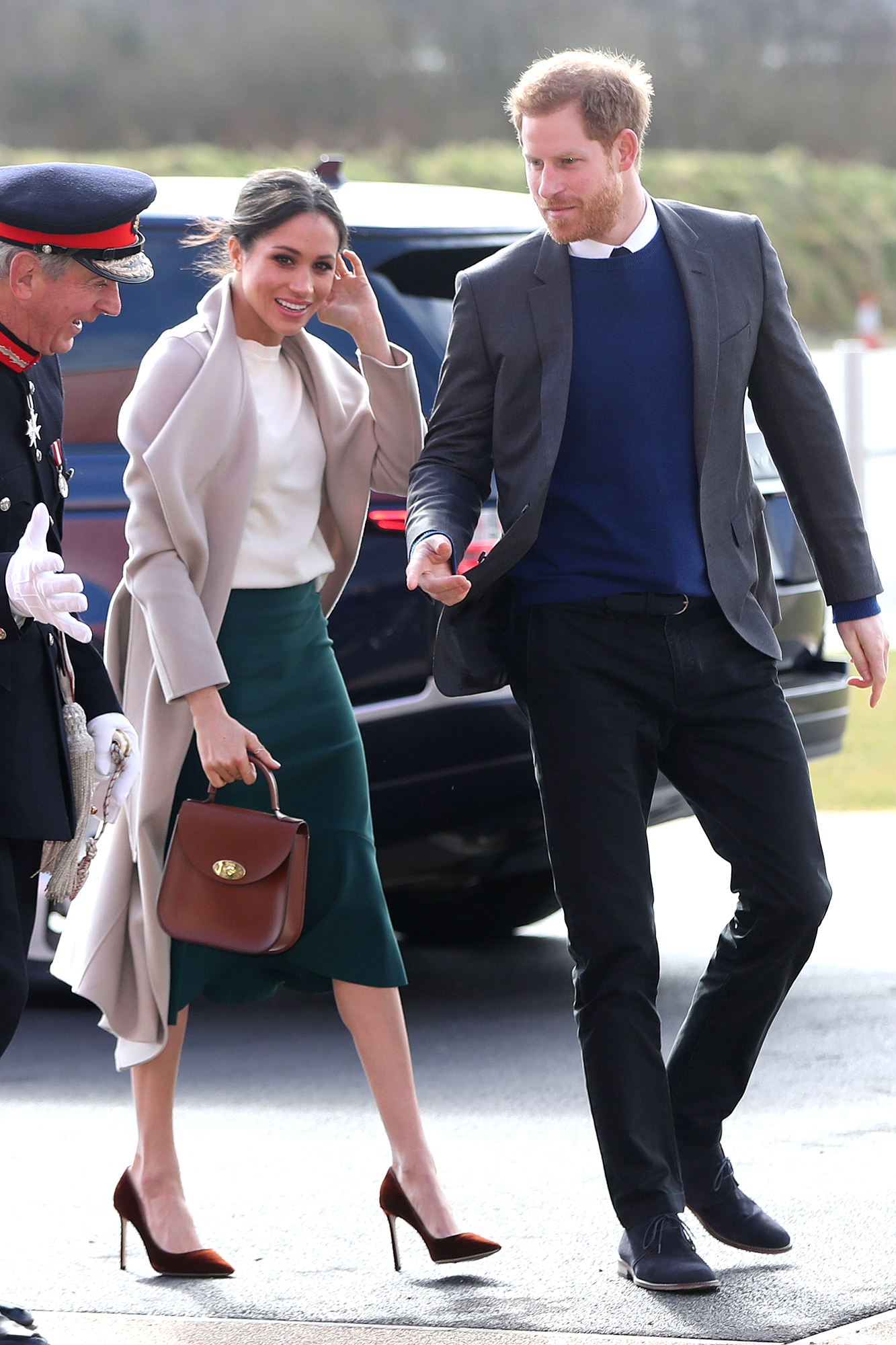 Royal visit to Northern Ireland. Prince Harry and Meghan Markle arrive for a visit to the Eikon Exhibition Centre in Lisburn where they attended an event to mark the second year of youth-led peace-building initiative Amazing the Space. Picture date: Friday March 23, 2018. See PA story ROYAL Harry. Photo credit should read: Niall Carson/PA Wire URN:35658041
