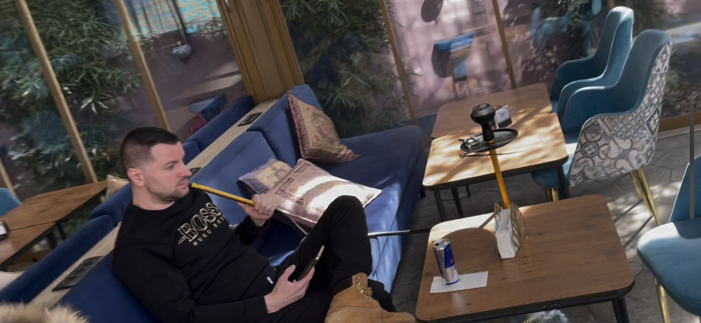 Fizz a băut un energizant și a tras din narghilea, în timp ce și-a rezolvat treburile pe telefon (Foto: CANCAN.RO)