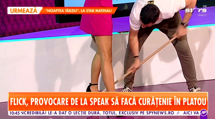 Flick, filmat în ipostaze nemaivăzute în direct la TV! A băgat mopul printre picioarele lui Nasrin Ameri și…
