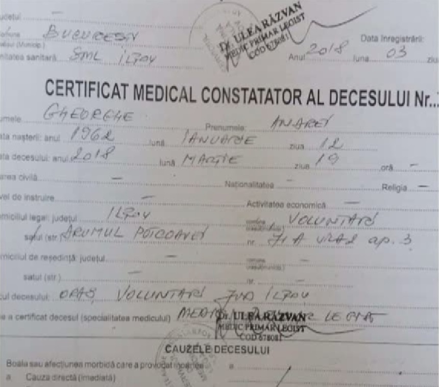 A fost făcut public certificatul de deces al lui Andrei Gheorghe! Ce scrie la cauza morții
