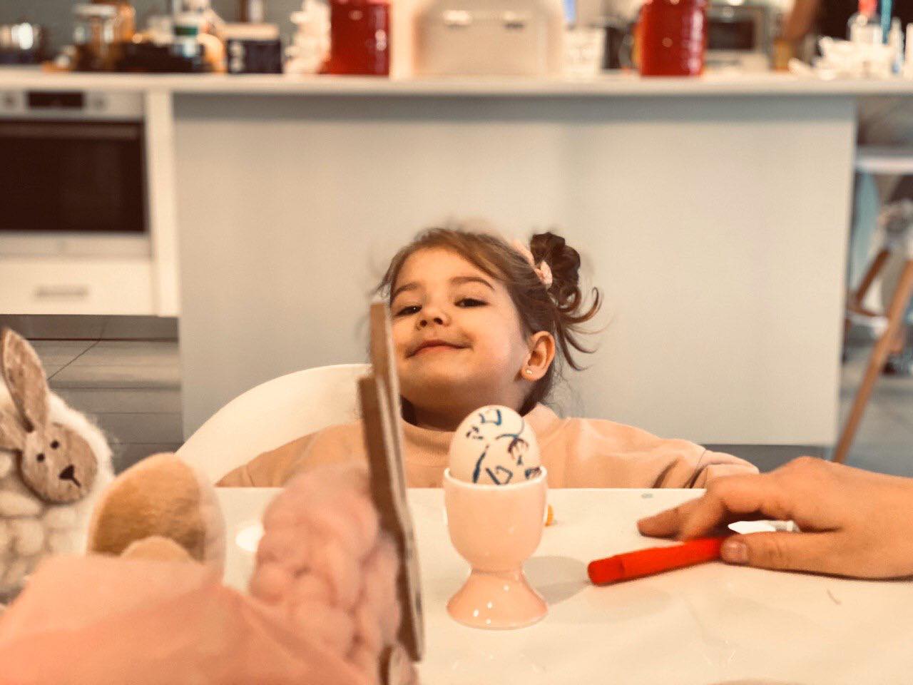 Fetița ”Yoneștilor” a vopsit ouă alături de părinții ei