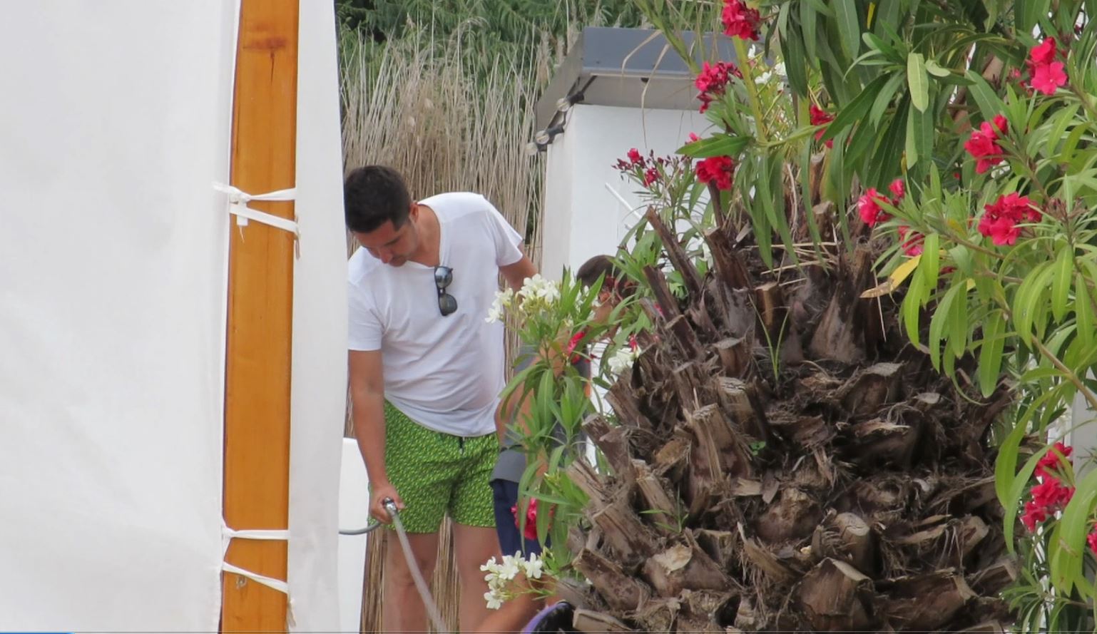 Mihai se spală pe picioare de nisipul de pe plajă