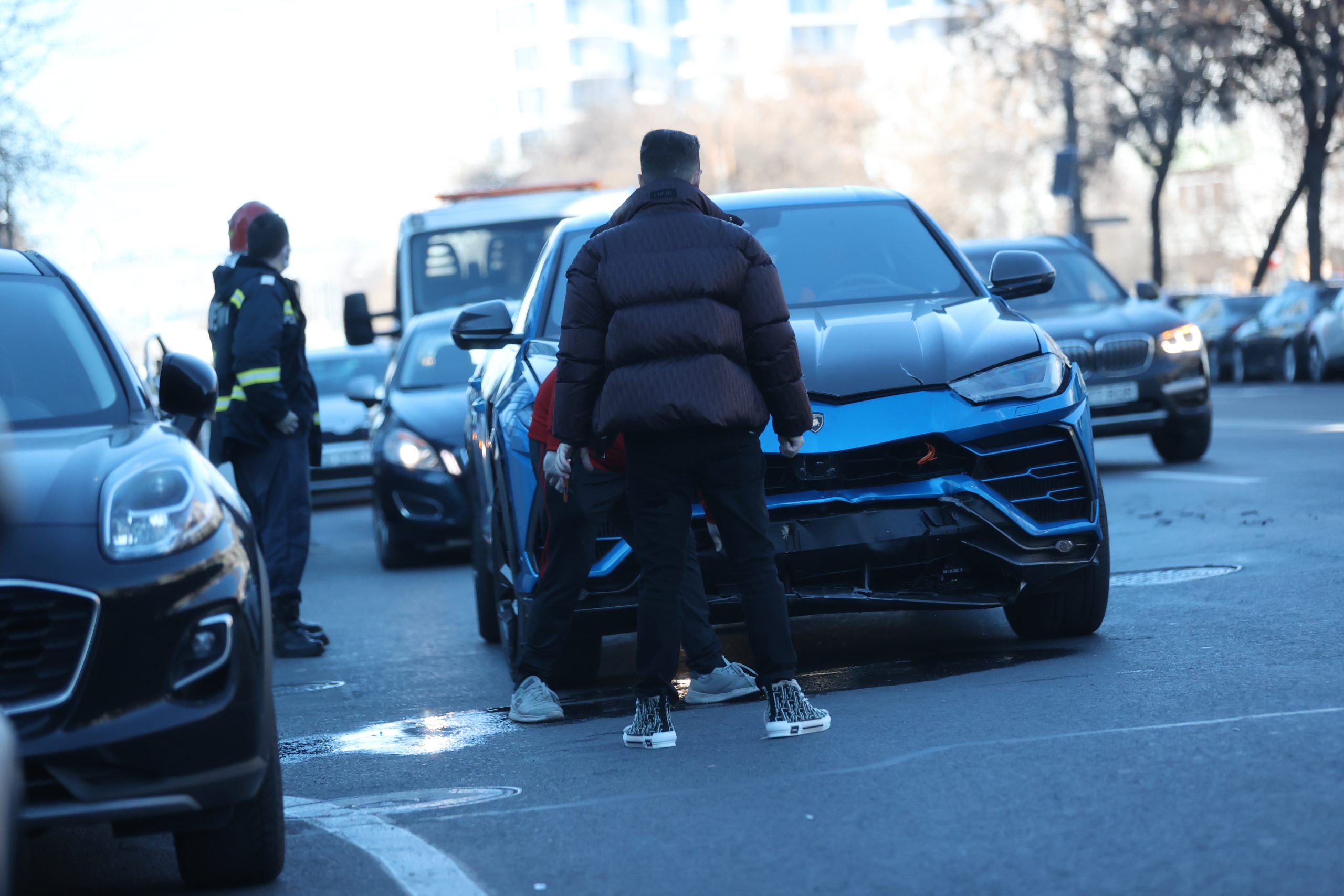 Fostul ”ginere” al lui Gigi Becali a plecat acasă pe platformă. Și-a ”înfipt” Lamborghini-ul URUS de 320.000 de euro în duba farmaciei!