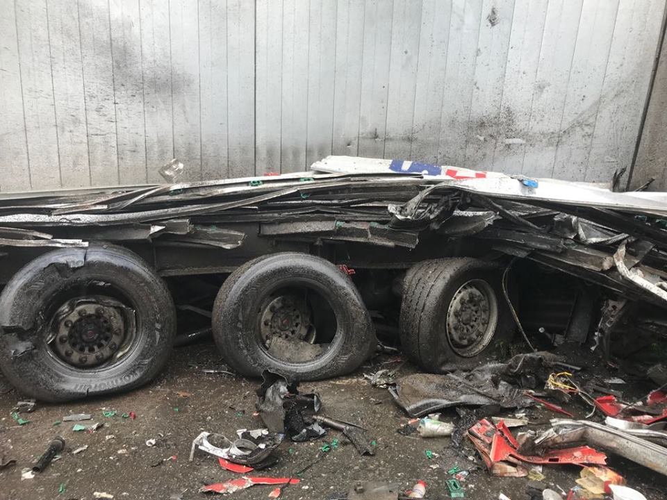 FOTO. Accident violent cu două TIR-uri şi un autoturism. Unul dintre şoferi, în stare gravă