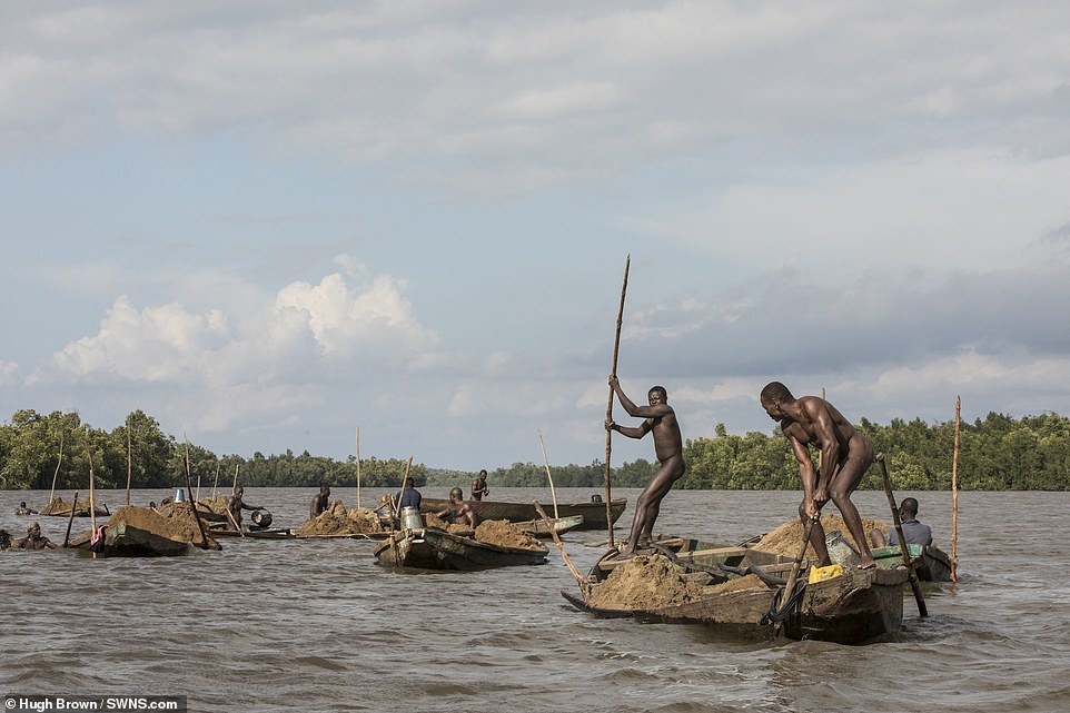 FOTO | ”Minerii musculoși” din Camerun! Se scufundă la aproape 10 metri pentru a scoate nisip, iar trupurile lor par sculptate