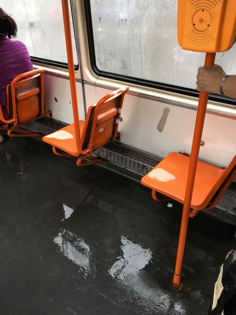 FOTO-VIDEO EXCLUSIV / În tramvaiul 41 e mai rău ca afară atunci când plouă în Capitală! Imagini scandaloase!