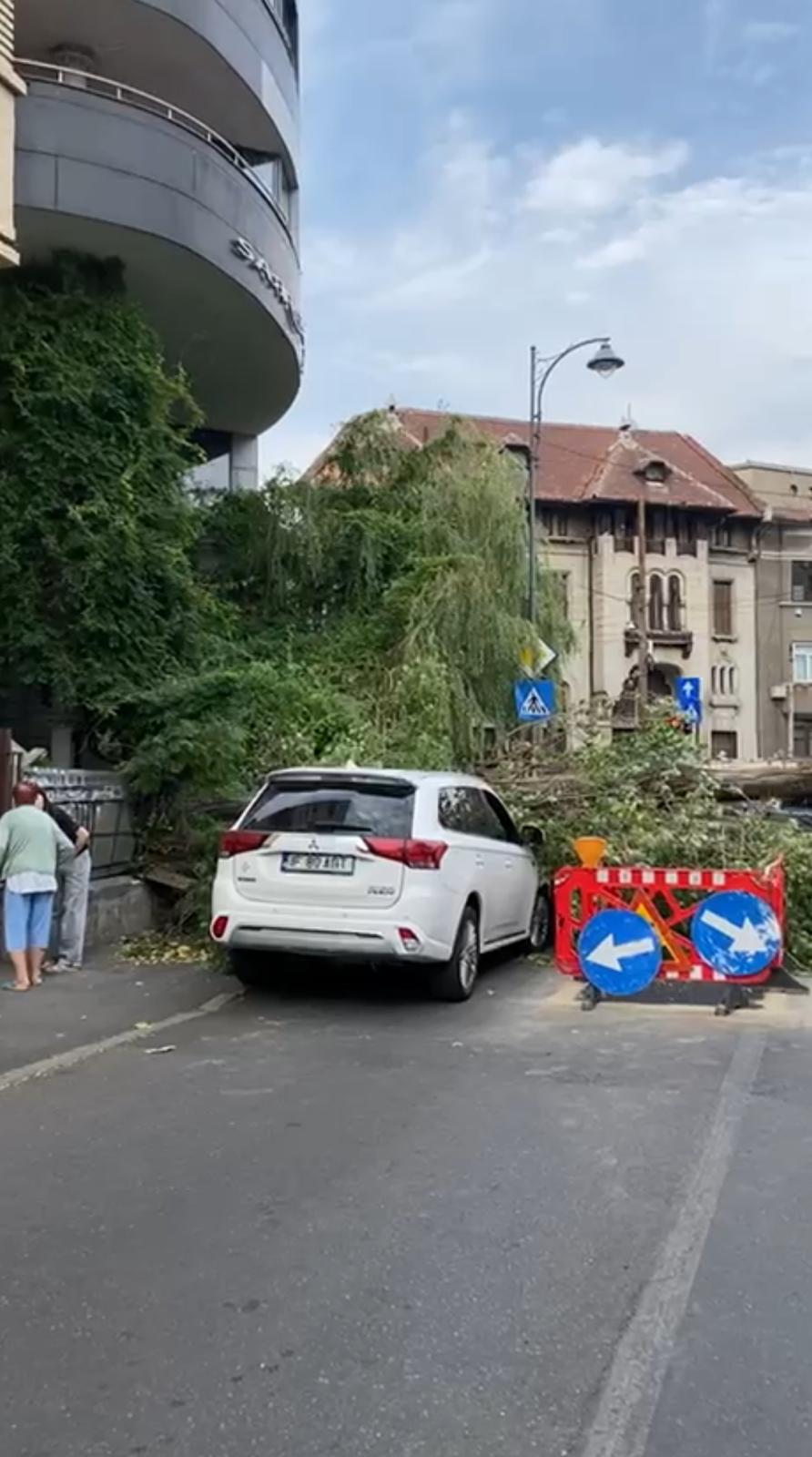 Furtuna a făcut prăpăd în București! Un copac a fost doborât în Sectorul 1 al Capitalei