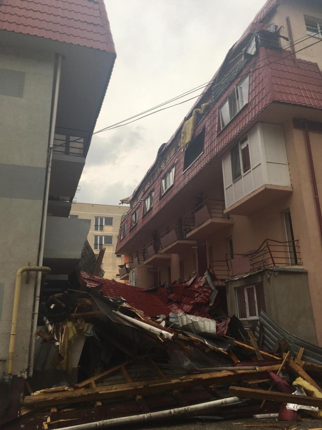 Furtună violentă în Baia Mare. Un bărbat a fost prins sub un acoperiș luat de vânt