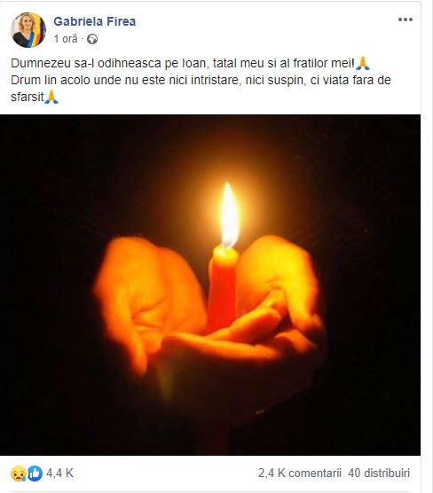 Gabriela Firea este în doliu. Mesajul emoționant postat după moartea tatălui ei