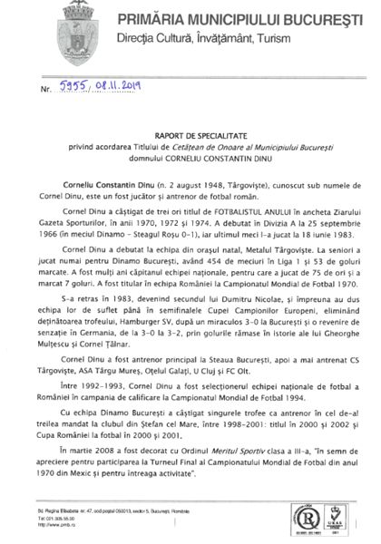 Gafa monumentală făcută de Gabriela Firea, înainte să îi acorde titlul de cetățean de onoare lui Cornel Dinu! Ce a fost scris pe referatul de aprobare la funcția fostului selecționer