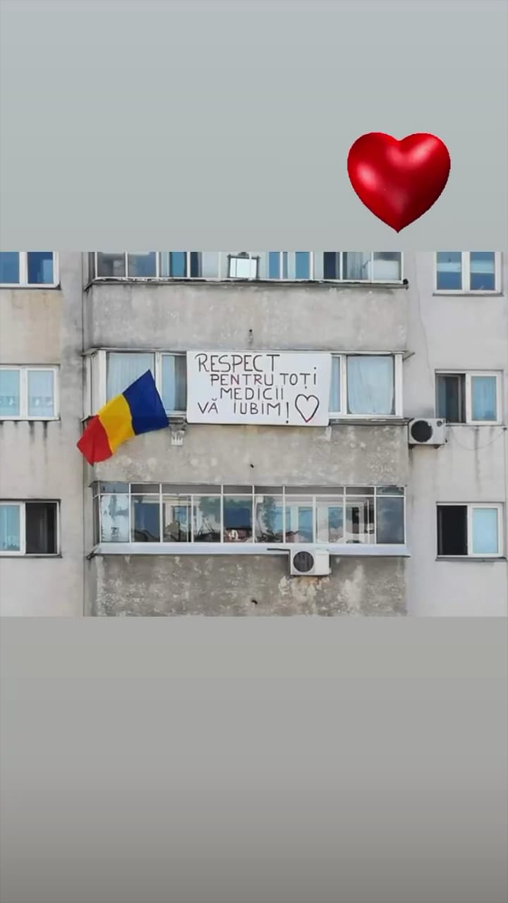 Gestul emoţionant al unui român pentru cadrele medicale din întreaga lume, aflate în lupta cu noul coronavirus! Ce a scris pe o pancartă atârnată la balcon