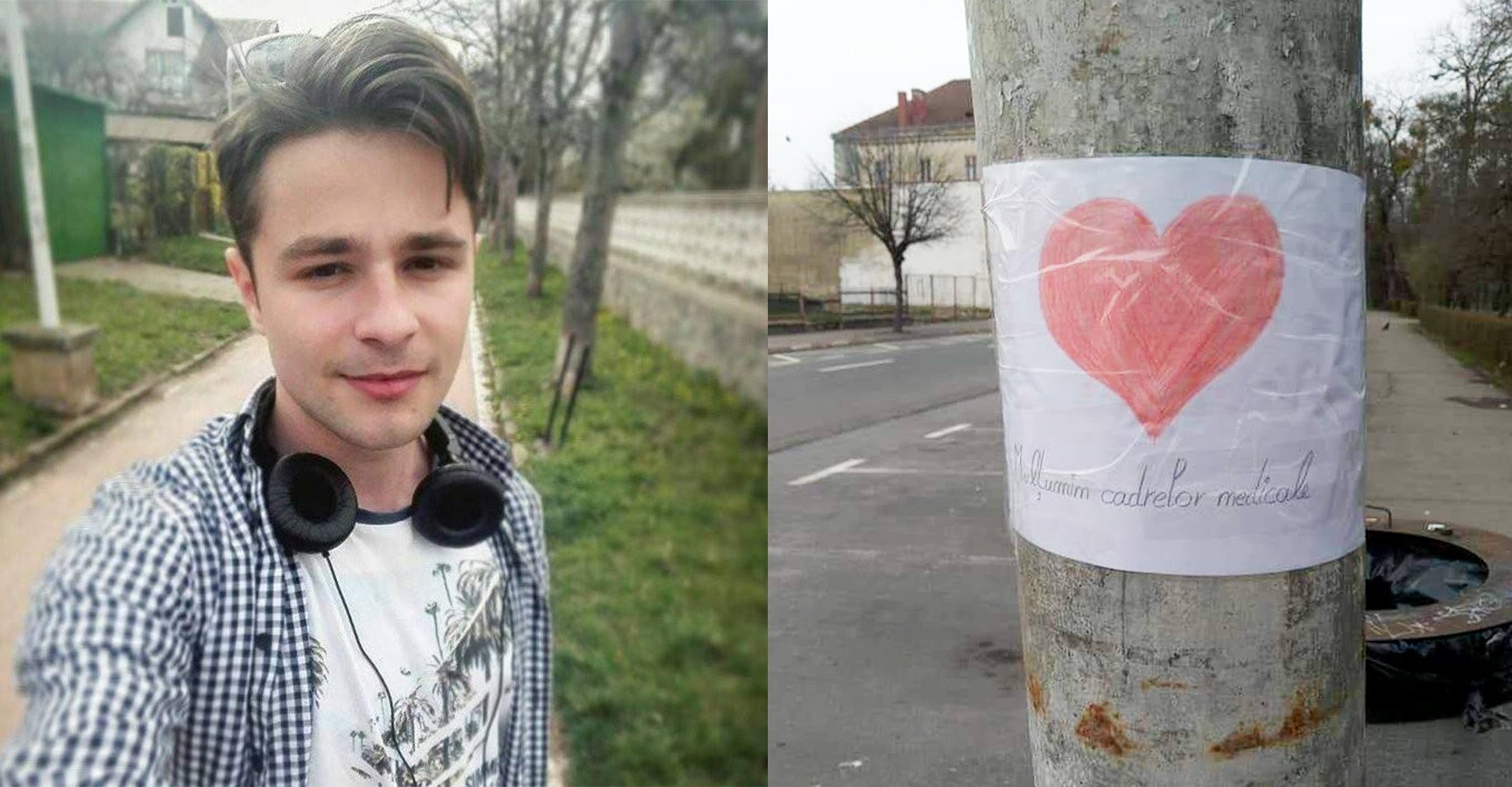 Gestul emoţionant al unui student din Sibiu a devenit viral! Ce mesaje a lipit Adrian Chirciu pe stâlpii din oraş