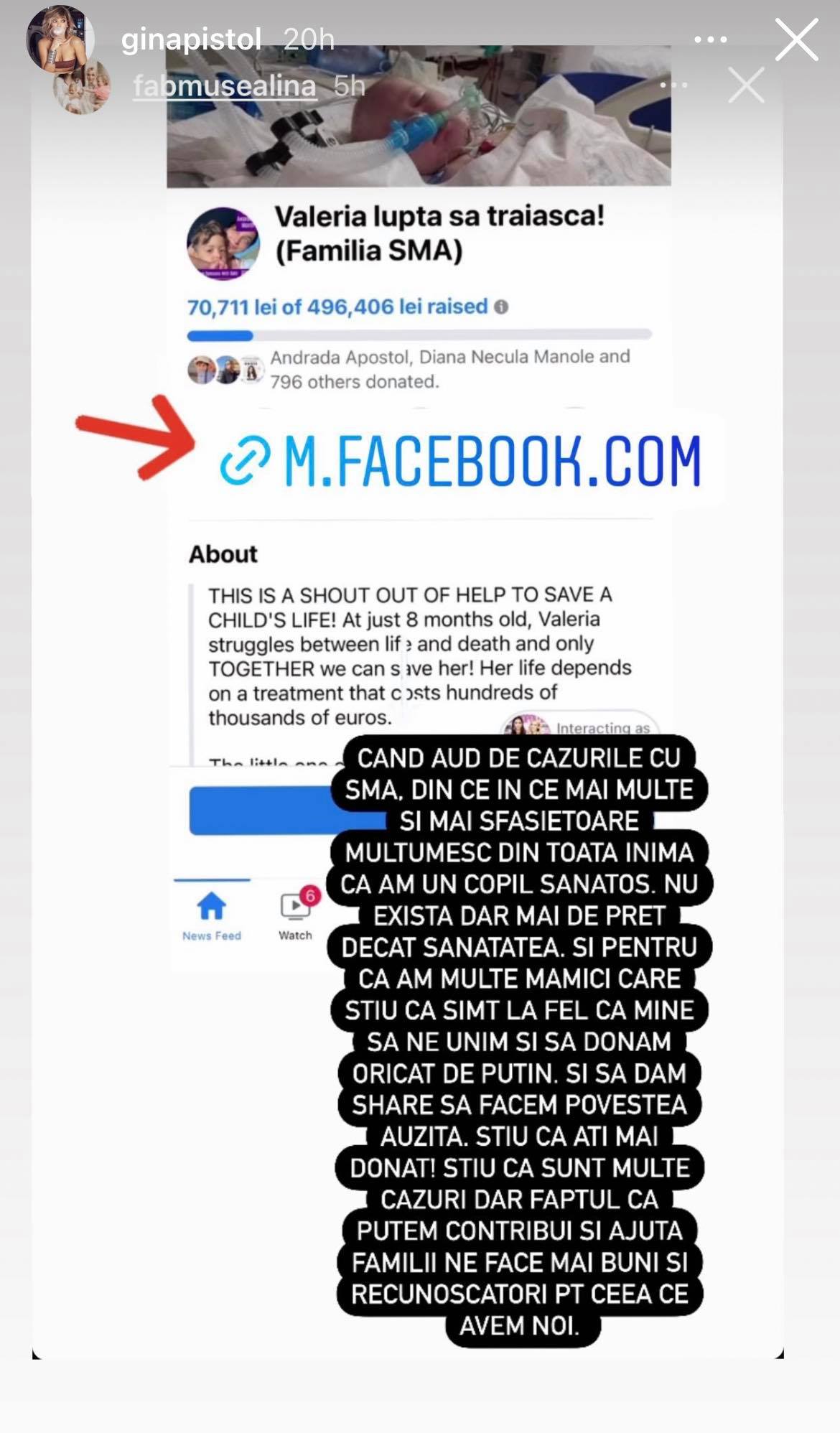 Gina Pistol, strigăt disperat de ajutor pentru micuţa Valeria: „Să ne unim”