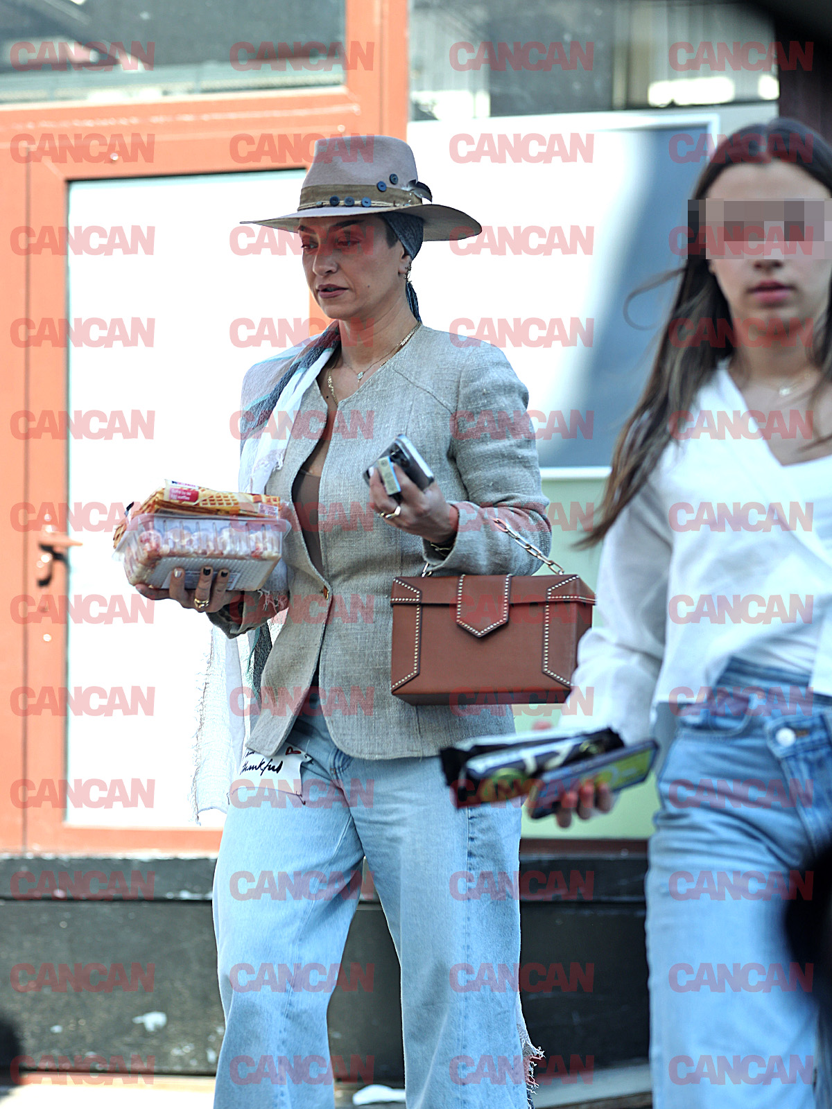 Giulia Anghelescu și fiica ies din supermarket