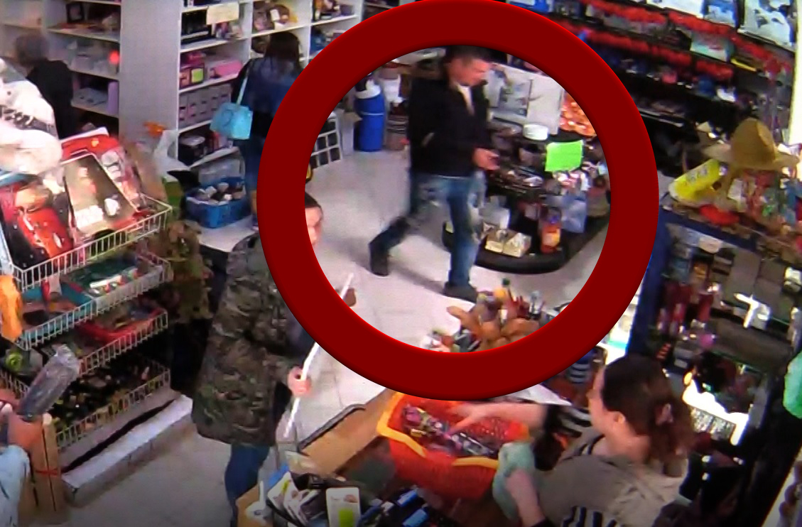 Suspectul, înainte de o îmbrânci pe vânzătoare și a ieși din magazin, în fugă