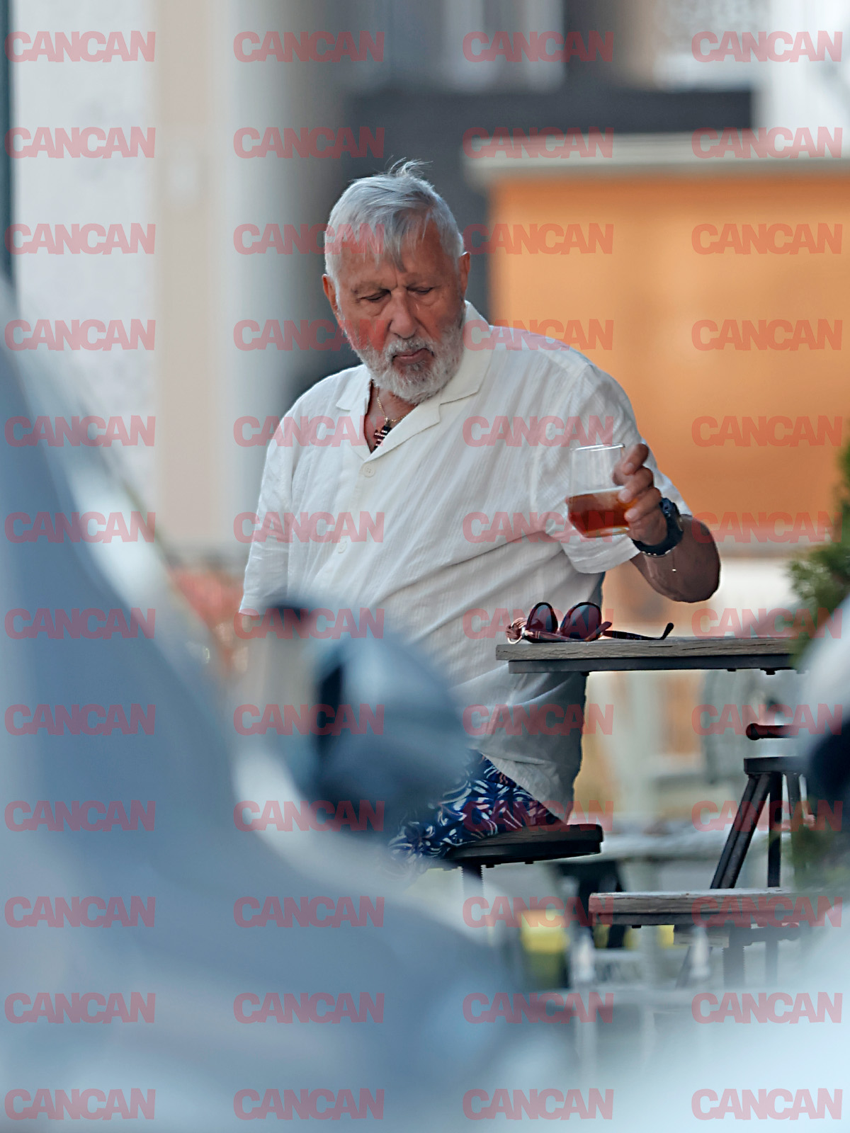 Ilie Năstase a ieșit singur pe terasă, la un pahar cu tărie. Foto: CANCAN.RO