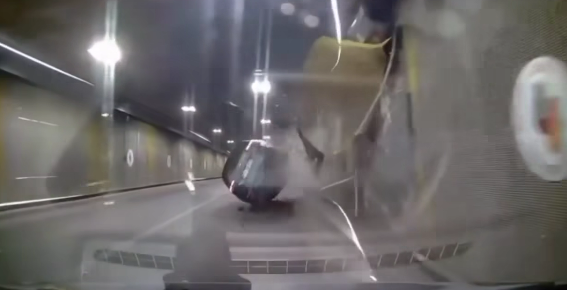 Imagini cu accidentul din Pasajul Unirii din București s-au viralizat. Ce greșeală majoră a comis șoferul care s-a „urcat” cu mașina pe perete
