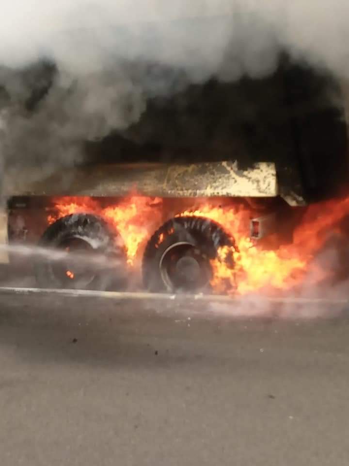 Imagini de groază. Un camion a izbucnit în flăcări pe autostradă. Traficul a fost blocat