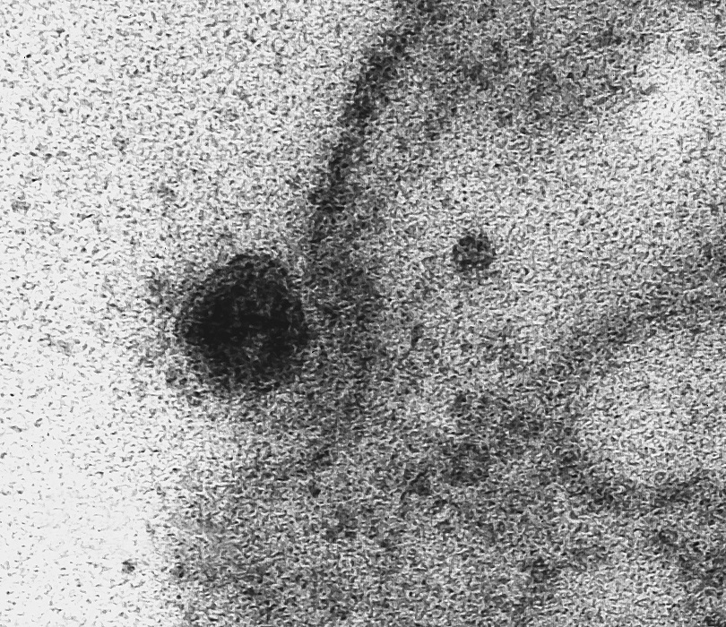 epa08351434 A handout picture made available on 08 April 2020 by the Oswaldo Cruz Foundation shows the SARS-COV-2 virus begin the infection process of cytoplasm of the cell, inside which is the nucleus, responsible for storing the genetic material of the cell. Brazilian scientists have captured images of the exact moment when the SARS-COV-2 virus infects a cell, the Oswaldo Cruz Foundation (Fiocruz) of Rio de Janeiro, Brazil, the largest medical research center in Latin America, reported on 08 April 2020. The photographs were taken with a transmission electron microscope during a study on the viral replication of SARS-CoV-2 and show in detail the contamination process of a cell, according to a statement from Fiocruz. EPA/Débora Barreto / FIOCRUZ HANDOUT HANDOUT EDITORIAL USE ONLY/NO SALES/NO ARCHIVES