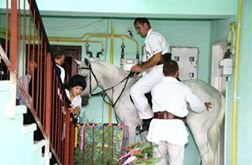 Imagini incredibile! A intrat într-un bloc călare pe un cal ca să își ceară mireasa de la părinți: „Un cavaler la pețit”