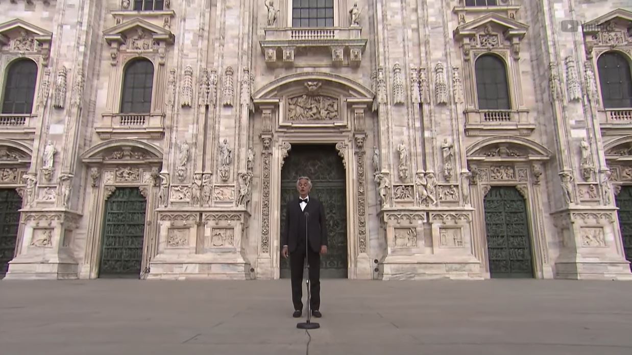 Imagini răvășitoare! Andrea Bocelli, concert uluitor în fața Domului din Milano, fără niciun spectator. Mesajul artistului a făcut înconjurul lumii