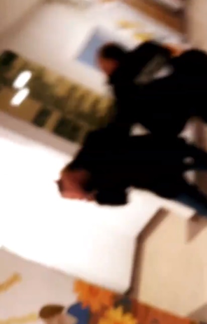 Unul dintre momentele când paznicul îl lovește pe tânăr