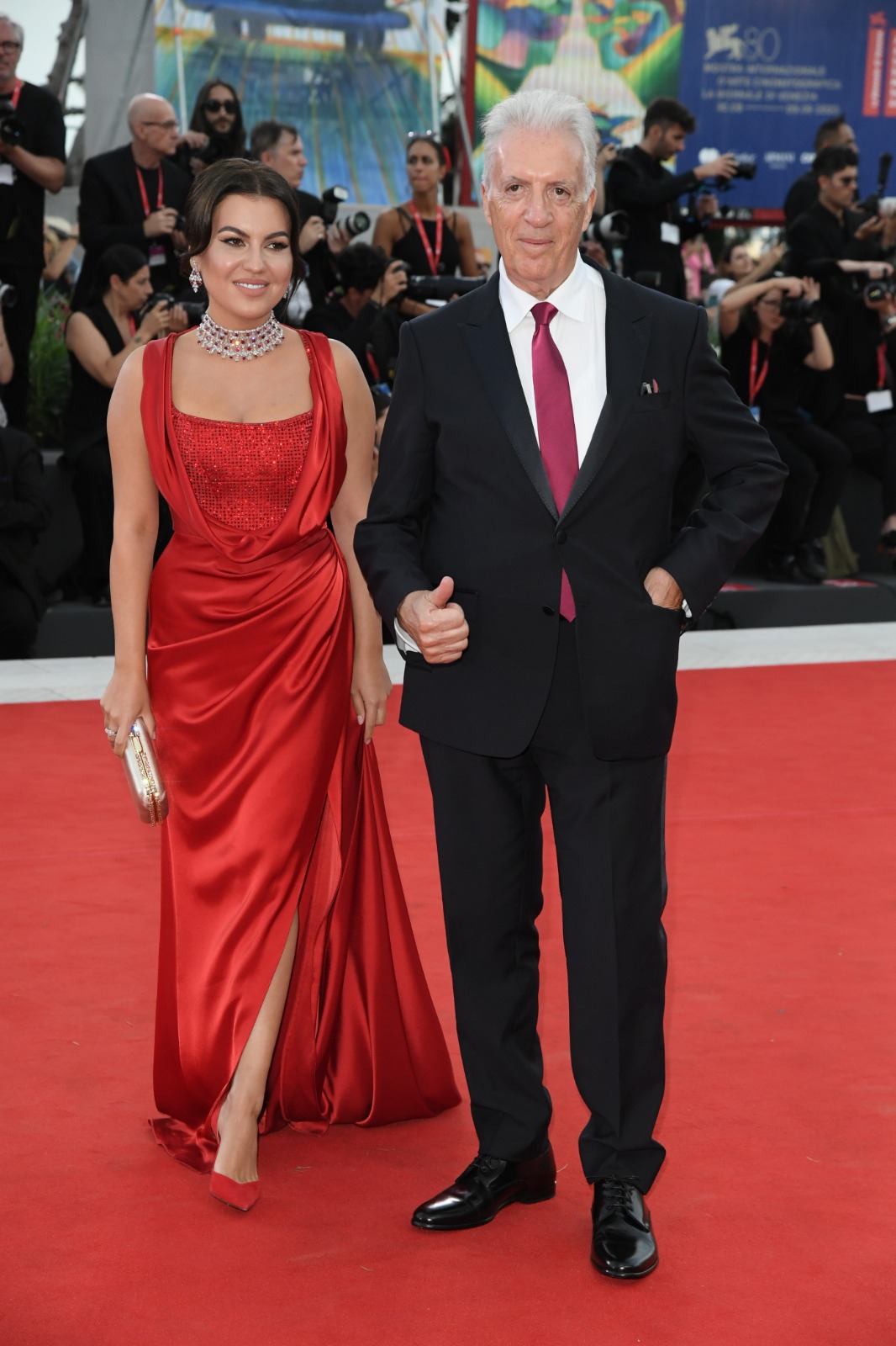 IMAGINI SPECTACULOASE la premiera de la Veneția. Doamna Ferrari, pe covorul roșu într-o rochie Cristina Săvulescu și cu 1 milion € la gât!