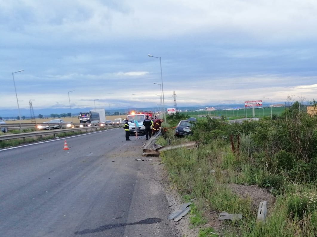 Imagini uluitoare pe DN1! A pierdut controlul mașinii, a rupt parapetul și apoi a intrat într-un stâlp