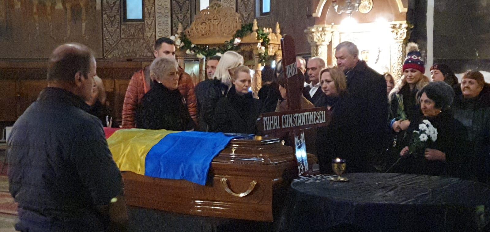 Sicriul lui Mihai Constantinescu a fost acoperit, în semn de omagiu, cu drapelul României