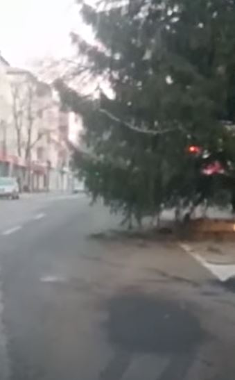 Imaginile zilei | Un brad de Crăciun, înalt de câțiva metri, blochează trecerea pe două benzi