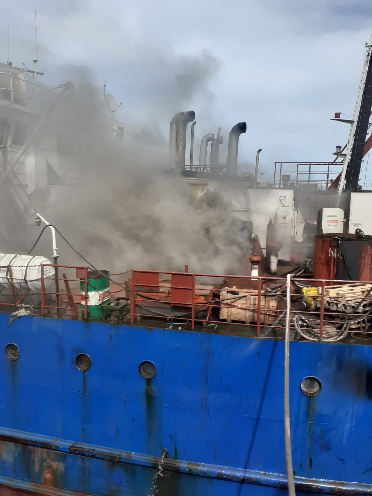 Incendiu de proporții la o navă din portul Midia! Flăcările uriașe pun în dificultate pompierii