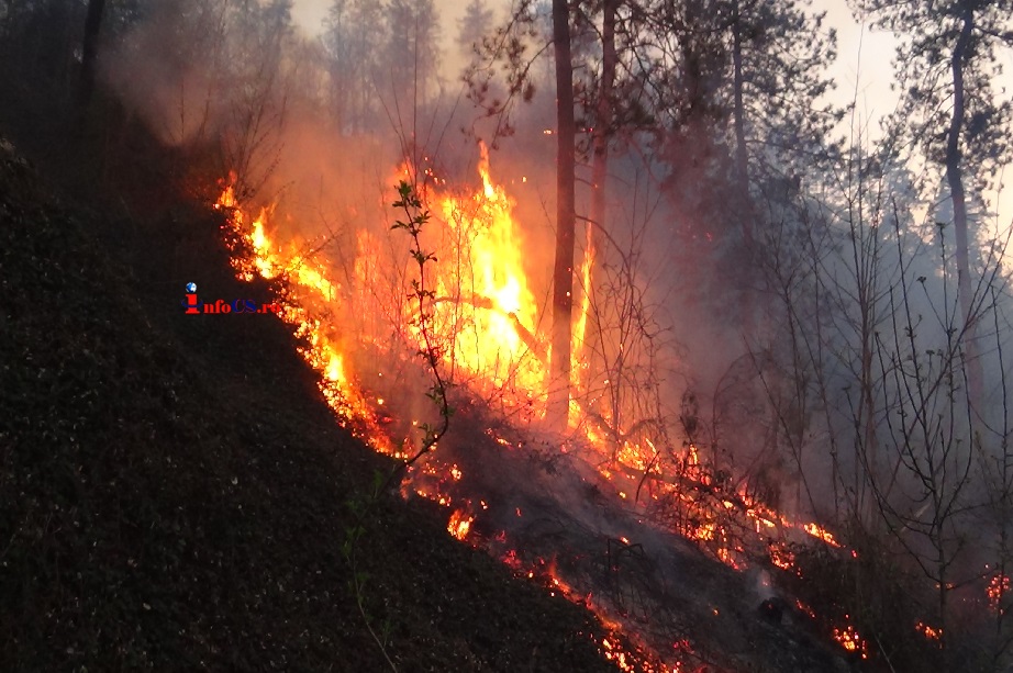 Incendiu puternic la marginea Reșiței, 150 de case în pericol. Culmea, localnicii fac selfie-uri | VIDEO