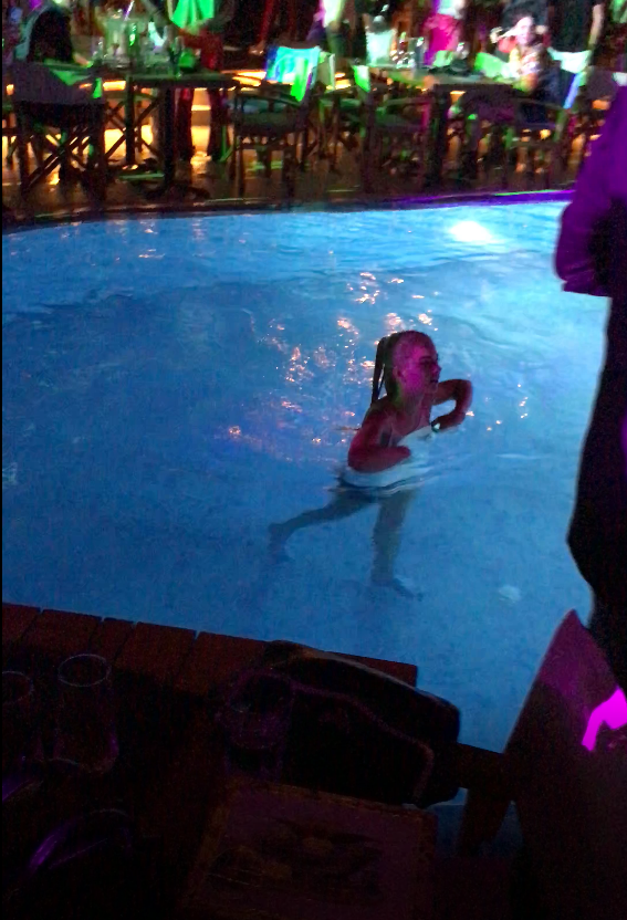 Ioana s-a aruncat în piscină, după ce a fost stropită cu șampanie