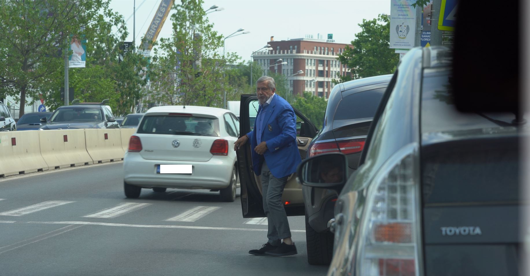 Ilie Năstase a ajuns la Promenada. Parchează lângă trecere și își lasă, pentru câteva minute, soția singură (Foto: CANCAN.RO)