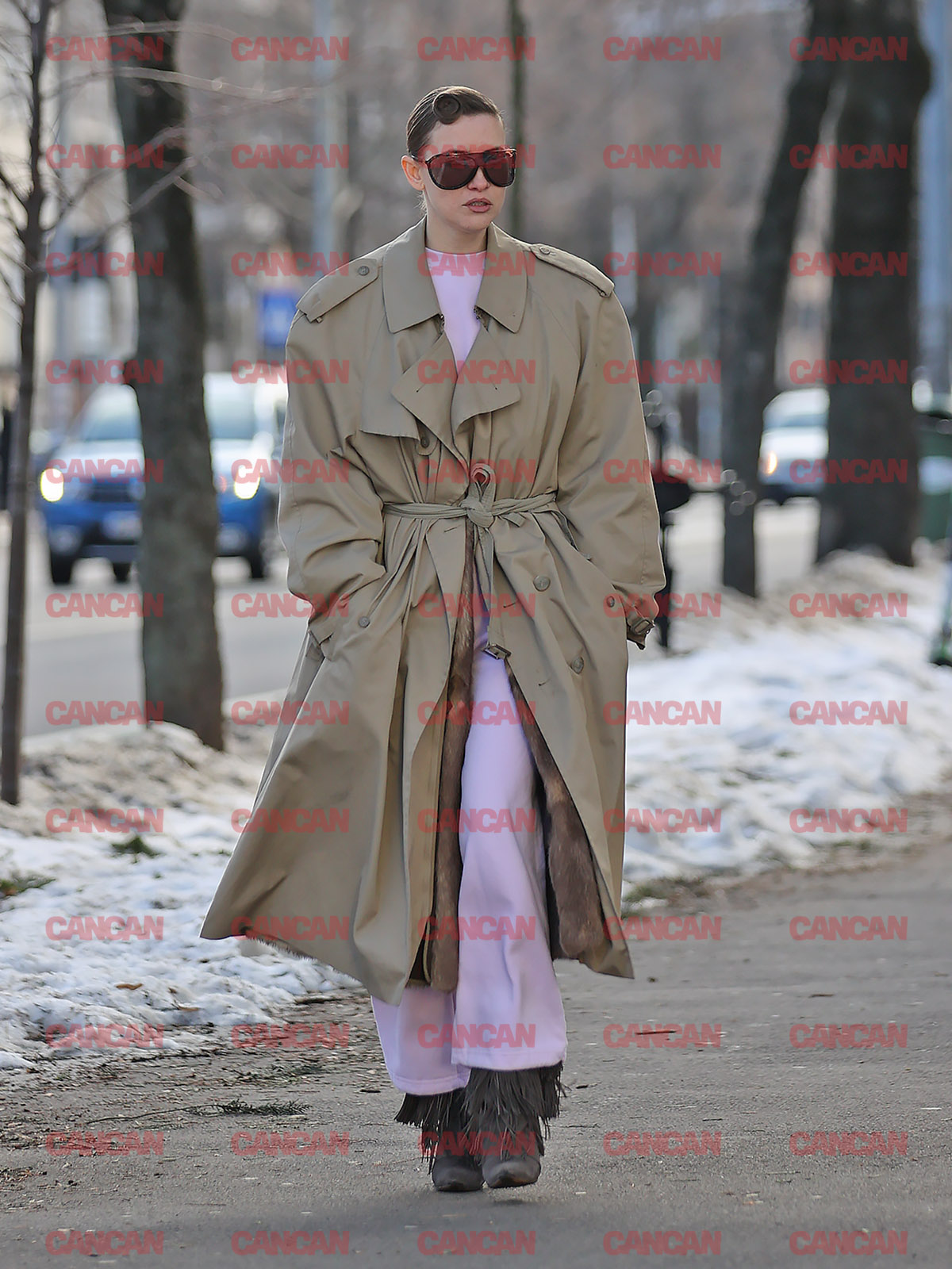 A purtat pantaloni albi, în ciuda bălților formate pe străzi