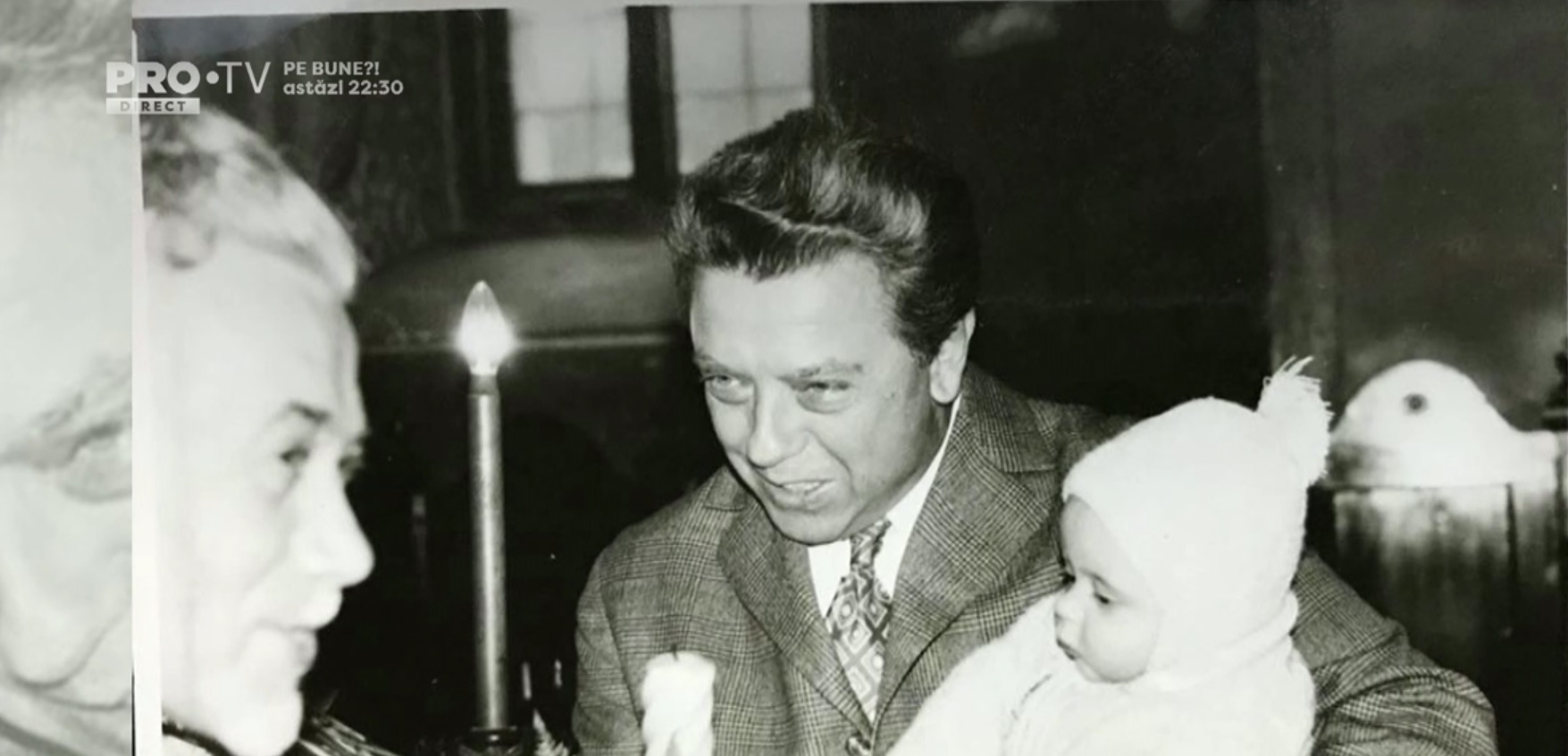Temistocle Popa în brațe cu artistul Keo, pe care l-a botezat. Sursa foto: captură Pro TV