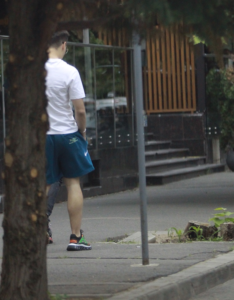 În timp ce Selly a avut o ținută colorată: pantofi sport cu verde și portocaliu, pantaloni scurți albaștri și un tricou alb, amicul său a optat pentru haine închise la culoare © CANCAN.RO