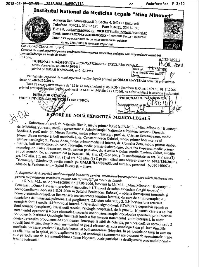 Documentele medicale care dovedesc starea precară de sănătate a lui Omar Hayssam