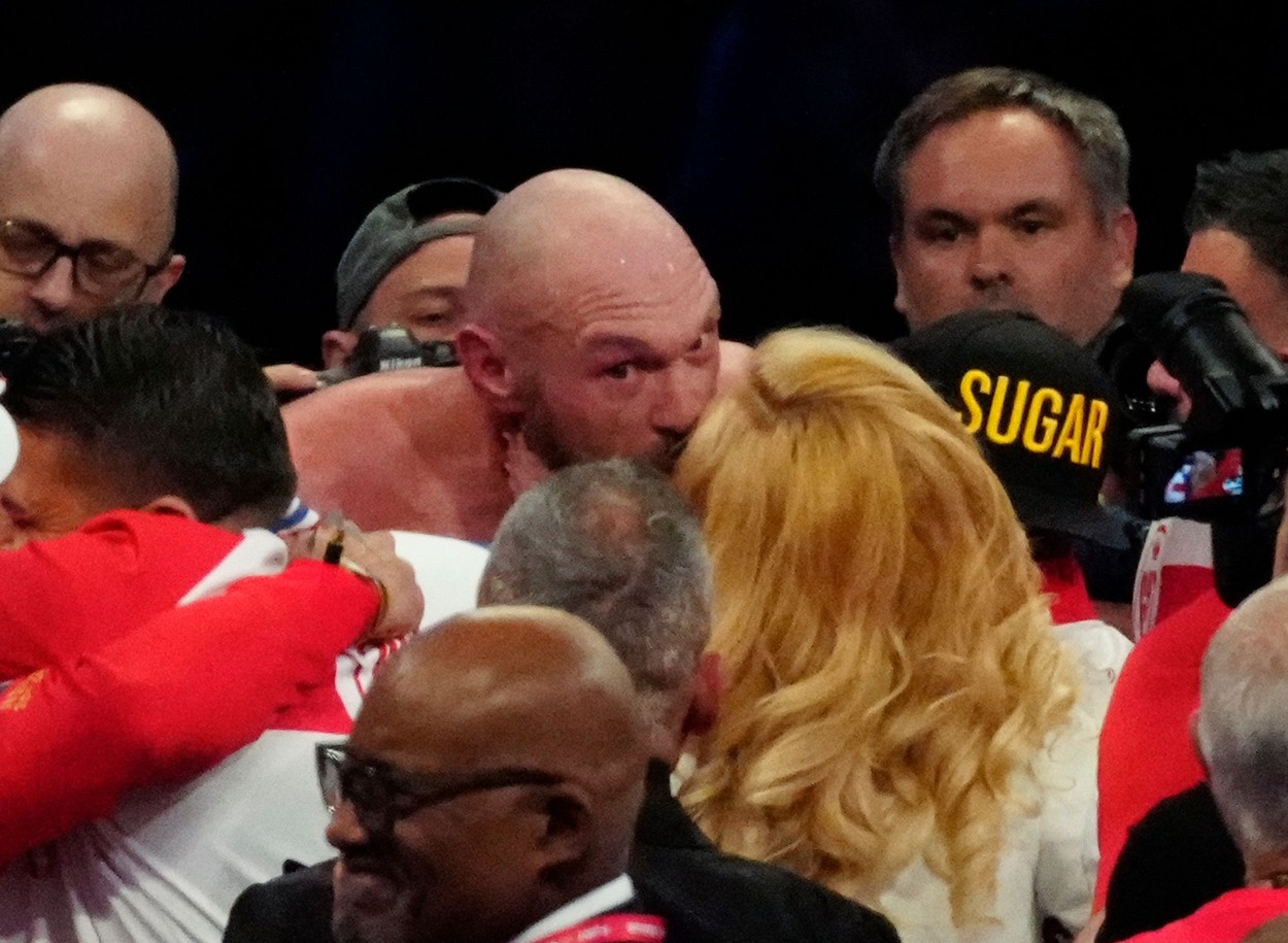Tyson Fury kisses his wife Paris after win