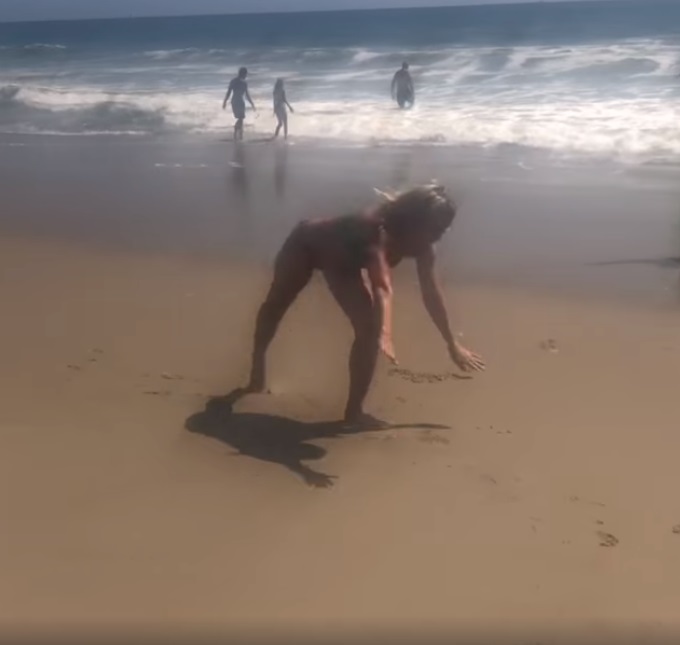 Cu ocazia împlinirii a 43 de ani de la istoria scrisă de Nadia Comăneci la Jocurile Olimpice de la Montreal, fosta campioană a făcut roata pe o plajă © Facebook