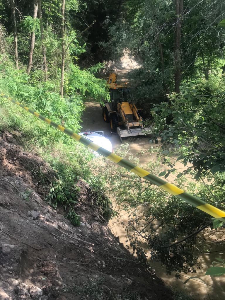 La un pas de tragedie! Un șofer a plonjat 7 metri, cu mașina, într-un pârâu. VIDEO