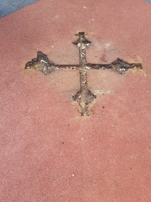 Autorii actelor de vandalism au făcut semnul crucii pe locul de joacă