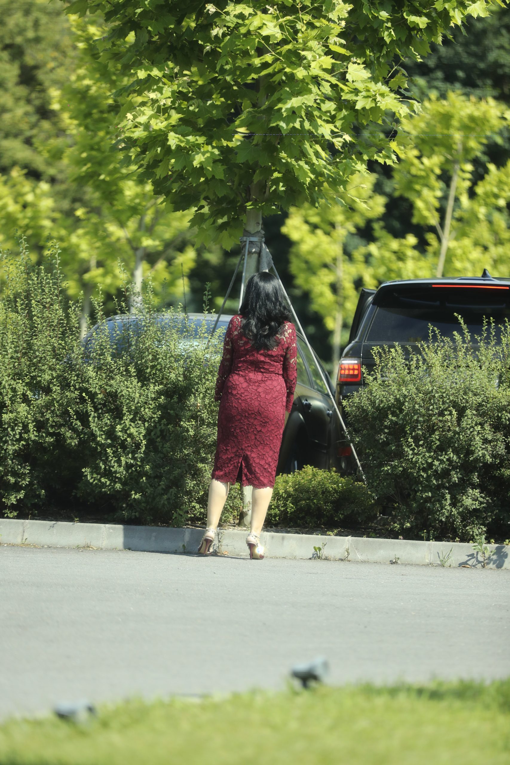 Luminița Becali a coborât din mașină și se îndreaptă către locul în care va începe, în scurt timp, petrecerea
