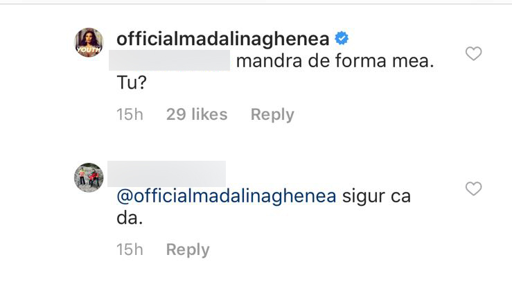 Mădălina Ghenea a răbufnit pe rețelele de socializare, după ce o prietenă virtuală i-a spus că are burtă