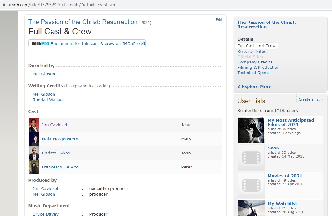 Maia Morgenstern apare și în distribuția afișată pe imdb.com, uriașa bază de date despre filme și cineaști