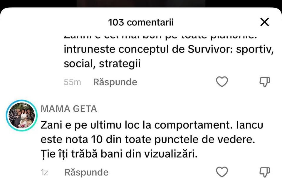 Comentariul făcut de Mama Geta la adresa lui Zanni / Foto: Captură TikTok